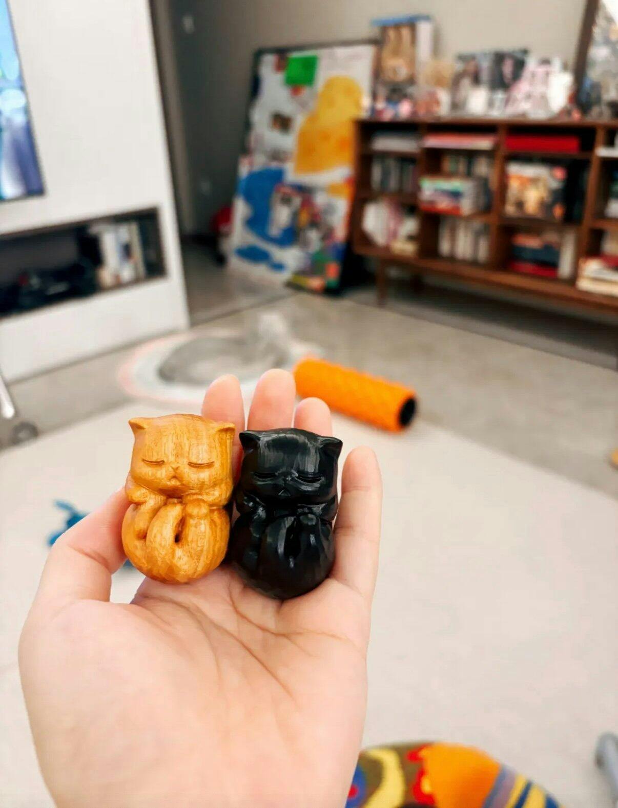 Every cat is different: there are 60% of wooden cats are hand crafted so there will never be 2 identical wooden cats. Every kitty will be a little bit different than others but they are all cute in the same way like real kitties in the world.
