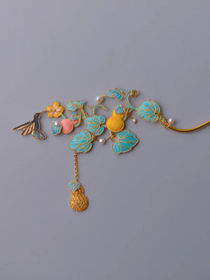 Feather-inlaying is a traditional Chinese art of precious metalworking. Ancient artisans inlaid kingfisher feathers into metal bases to imbue the jewelry with a vibrant life and subtle grace.