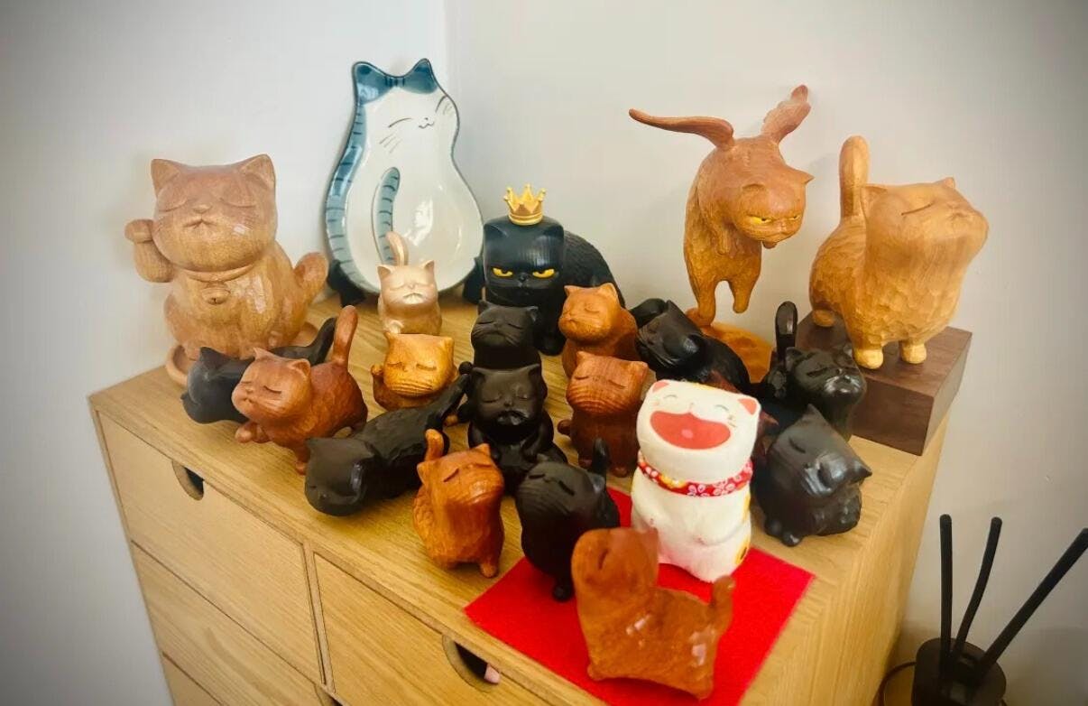 unique home decor gifts - wood animal decor - wooden animal sculpture - wooden cat - wooden home- decor - housewarming gift - wood carved - luxury gifts for men- cat lover gifts - cat statues | Dora Findery